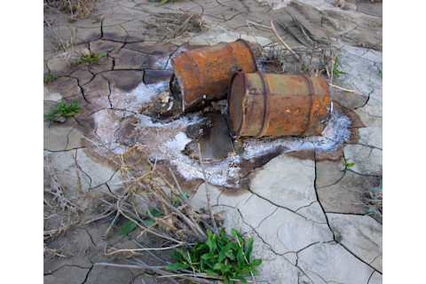 Barrels along the St. Vrain River in Longmont, Colorado. (Photo: © Tom Yulsman) I came upon on these nasty looking containers while taking photos along mudflats left behind when the St. Vrain River in Longmont, CO receded. God only knows what liquids are oozing out of them.