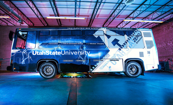 doesn't just pick up passengers at its bus stops; it also picks up a charge for its battery. Unlike its public transportation contemporaries, the electric "Aggie bus" at Utah State University has no overhead wires. Nor does it need to be plugged into a power source. Instead, the battery receives a five-kilowatt wireless boost from a charge plate installed at each bus stop. With consistent routes and frequent stops, the bus is able to charge as it goes rather than requiring a big battery on board to stockpile an entire day's worth of power. The induction set-up requires that a transformer be split between the bus and the charge plate. When the driver pulls over at a stop, the two halves of the transformers align, and five kilowatts of energy are zapped from the plate to the bus. Nikola Tesla first demonstrated this wireless energy transfer---dubbed the "Tesla effect"---in 1891, but the research team at Utah State