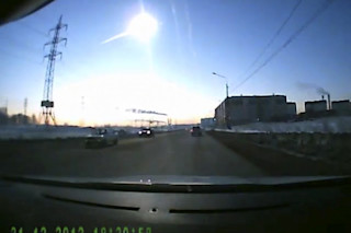 Below is another screen capture. Click for a video capturing a massive explosion (apparently the sonic boom of the meteor) and its after effects — shattering glass and sirens going off.