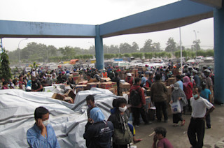 Local authorities help refugees during the 2010 eruption of Merapi in Indonesia. Image: Mathias Eick EU/ECHO Sometimes it is hard to comprehend how much effect volcanic activity has on countries where erupting volcanoes are more commonplace. The United States has at least 65 known active volcanoes, but many of those volcanoes are in remote places like the Aleutian Islands. The majority of volcanoes near populated areas are fairly quiet right now -- think Hood in Oregon or Rainier in Washington. However, some countries have a much higher density of volcanoes near population centers. The Volcanoes of the World - 3rd Edition had a graph of number of volcanoes compared to the population near these volcanoes and Indonesia leads the world in quantification -- what they call a "VPI". This stands for "Volcano Population Index" and more or less is a measure for how many people live within X km of a volcano that is known to have erupted since 1500 AD. So, VPI10 will tell us how many people live within 10 km of a historically active volcanoes. For a country like the United States, that number of relatively low, somewhere in the vicinity of a few thousand people (see below). However, for Indonesia, where there are at least 167 active volcanoes, the VPI10 is 5-10 million people. If you compare that to the total population of each country, for the U.S., only 0.001% would be considered VPI10, but in Indonesia, that percentage is closer to 3-5%. If you look at the VPI100 for Indonesia (people within 100 km of a Holocene volcano), the figure grows to a staggering ~200 million -- almost the entire population of the island nation.