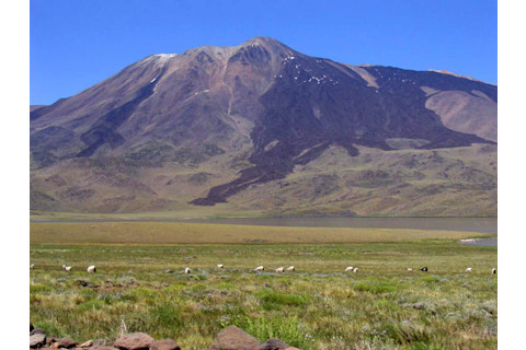 Tromen in Argentina. The dark areas are young lava flows on the slopes of the volcano.