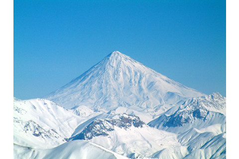The conical peak of Damavand in Iran, seen in the winter of 2004.