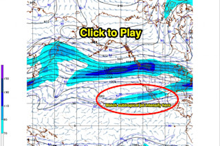 The average strength of jet stream winds between November and February compared to the same months during the strong 1997/1998 El Niño. Note the strengthening west of Baja in 1997/1998. (Data: NOAA/ESRL. Animation: Tom Yulsman) In this animation, the first frame shows the average strength of jet stream winds between the beginning of November and end of February — when El Niño is not a factor. The second frame shows the winds in the same months during the strong El Niño of 1997 and 1998. When there is no El Niño, we've got a strong jet off Japan, but then it peters out east of the International Dateline. During the 1997/1998 El Niño, the subtropical jet strengthens significantly east of the dateline. This strengthening helped sweep storms into California and across the U.S. southern tier, just as predicted. Is the same thing about to happen? If I were a gambling man, I'd double down on that bet. But this is weather, which means surprises could definitely be in the offing. So stay tuned...