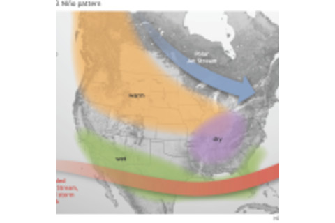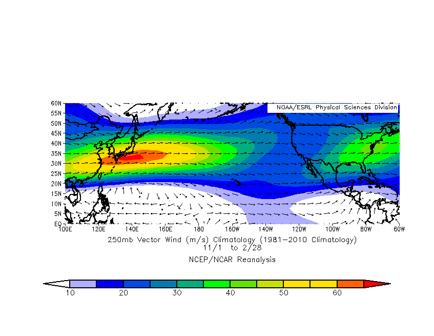 El Niño's impacts across North America For the United States, El Niño's impacts typically arrive on a strengthening of the subtropical jet stream, a phenomenon that tends to sweep Pacific storm systems on a more southerly track than normal — across Southern California, and then the southern tier of the United States. And if the GFS weather model is right, that strengthening is about to take shape. Take a look at the screenshot at the top of this post to see where this strengthening typically happens. Then click on it to watch a video showing the forecast evolution of winds at the height of the jet stream in the atmosphere between Nov. 7 and 23rd. See that lengthening stripe of blue out over the Pacific off the coast of the Baja Peninsula, extending across Mexico and up into the U.S. southern tier of states? That sure looks like a strengthening of the subtropical jet stream to me. (At the same time, there's still that stronger branch to the north. Ain't weather fun?) I'm a science journalist (and a journalism professor at the University of Colorado), not a meteorologist. So I thought I'd dig a little deeper to reassure myself that I'm actually on to something. And here's what I came up with:
