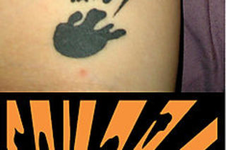 Jaana writes, "I am a chemist and work on the legislative side of science. I also have a bit of a temper, so when choosing this tattoo, the choice was obvious. Its a modified version of the chemical hazard sign for 'explosive' and while hidden under a lab coat most of the time, depicts my personality quite well."