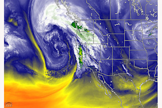 The animation starts at 10:30 a.m. local time on the West Coast and ends at the same time today (Thursday, Jan. 5). Once again, the view shows water vapor in the atmosphere and a radar view of precipitation.