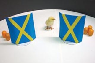 Young chickens just a few days old can count and perform basic arithmetic, according to a fluffy new study. Researchers manipulated objects that the chicks had formed an attachment to, moving the objects behind little screens, and found that the observant young birds kept track of where the objects were. In effect, the chicks were solving simple math problems like "4 – 2 = 2." While some adult animals, including primates and dogs, have been found to have an understanding of basic math, researchers had not previously demonstrated numerical abilities in any young animals (except for humans). Karen Wynn,
