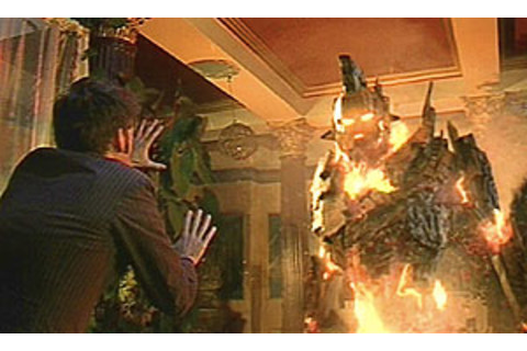 The Doctor fights off a magma creature in Pompeii.