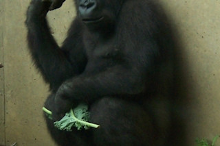 While this captive gorilla noshes on fibrous veg such as kale, in the wild, the animals' diets vary seasonally, as does their microbiome. (Credit Wikimedia Commons/Ltshears) Researchers analyzing the gut microbes of gorillas and other primates found seasonal shifts that underscore just how much is missing from the modern human diet — and why it matters. Right now, you're hosting your own special ecosystem. Millions of microbes live out their lives on your skin and in every nook and cranny, especially in your gut, where they perform a multitude of essential tasks. Sort of like tiny houseguests who actually cook and clean. The microbiome — particularly the mini-cities in your gut — has been a popular research focus of late as scientists investigate what it can tell us about health, behavior and even human evolution. Researchers probing the poop of 87 wild western lowland gorillas in the Republic of Congo over three years found that the apes' gut microbiome population fluctuated seasonally based on resource availability. Though the animals' diet typically consisted of leaves and bark, in the dry season they chowed down on abundant fruit, and their microbiomes changed accordingly. A similar seasonal shift has been observed previously in our own species, in members of traditional hunter-gatherer societies, such as the Hadza of Tanzania. It's not the case, however, for the average human living in an industrialized environment where a global industry serves up the same produce year-round to restaurants and grocery store shelves, whether it's snowing or sweltering in your neck of the woods. The researchers sequenced the genetic material of the different microbes present in the gorillas' fecal material to find that the seasonally-shifting bacterial populations did different things. Bacteria that helped the apes break down bark and other fibrous material were replaced annually by different microbes when fruit was in season: These fruity fellows fed on a protective layer of mucus in the gut itself. In turn, the arrival of bark season (mmm!) sent the mucus-nibblers packing and brought back the bacterial breakdown team. Given how close Homo sapiens are on the Tree of Life to gorillas and other primates included in the study, it's not crazy to compare gut microbiomes and see that ours may be falling short in terms of optimal health. The average human in an industrialized society with a season-less diet — especially one that favors animal protein over veggies — is likely living a fiber-deficient life and has the unbalanced microbiome to prove it. With our microbiomes already less diverse than those of our nearest primate kin, the lack of seasonal fluctuation may mean the ever-present mucus-eaters and other potentially harmful bacteria in the gut can nibble away at us year-round, increasing intestinal inflammation and even potentially raising the risk of colon cancer and other disease. The research appears in Nature Communications and is open access, so take a read for yourself.
