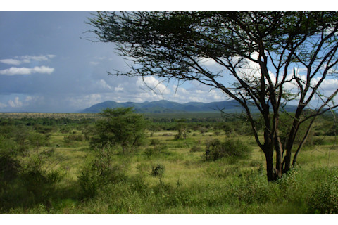 Cerling and his colleagues have found that seven million years ago, grasslands with sparse trees existed at these sites. The woody cover increased over the next few million years, reaching its greatest extent about 3.6 million years ago, when the sites were 40-60% woody cover. Then the woods began to retreat. By 1.9 million years ago, there was no place left with more than half woody cover. The environments continued to open up, the trend continuing till today. I asked Lieberman, who studies the evolution of human anatomy, how he thinks hominin evolution played out against this ecological backdrop. "Chances are we split from other apes in the forest," Lieberman told me. He notes that chimpanzees, bonobos, and gorillas all live in the forest today. The fact that we don't find early forest hominins is probably due to the fact that closed forests are lousy places for fossils to form. It's probably no coincidence that scientists have found practically hardly any fossils of chimps or gorillas. They've lived in the wrong place. Another crucial fact to consider is that the earliest known hominins have a number of features that hint that they were no longer knuckle walkers. A number of researchers argue that while they couldn't walk as fast as we can and probably couldn't run at all, they were already bipedal. So even though the earliest hominin fossils come from lightly wooded East African grasslands, Lieberman suspects that the origin of bipedalism took place earlier, and it took place in forests elsewhere on the continent. (Another paleoanthropologist, John Fleagle, expressed a similar sentiment to me.) Lieberman suggests that the earliest hominins adapted to the margins of those early forests, where they had to travel further from tree to tree to find fruit. He and his colleagues have found that it's four times more efficient for a human to walk a given distance than it is for an ape to knucklewalk. Saving energy on these trips could have translated into more babies. By about seven million years ago, studies like Cerling's now suggests, hominins were already moving around on two legs through open woodlands. Hominins evolved to be more efficient walkers. They also acquired big teeth and jaws. Lieberman argues that hominins need this new mouth equipment so that they didn't have to rely on fruit alone. They could also chew on harder, tougher plants like tubers, which served as fall-back foods in the open woodlands. Although tree cover increased for a couple million years, forests never came to dominate the East African landscape in the past seven million years. And when open grasslands returned with a vengeance, hominins underwent a dramatic change. They got tall and acquired traits that Lieberman argues were adaptations for running. Their teeth and jaws got small; their snouts disappeared. Lieberman argues that this change marks a new way in which hominins coped with the increasing grasslands: they became hunter-gatherers, traveling long distances to stalk game. And once they began to enjoy this high-protein diet, one more change occurred: the energy-hungry hominin brain was able to expand towards its current size. But he is quick to point out that there are some important facts about hominin evolution that don't fit neatly into the scenario he sketched out for me, and a lot of other crucial facts thtat remain to be discovered. "Anybody who isn't confused doesn't know what's going on," he said. At least scientists now have a better backdrop for finding out exactly what did happen on the way to Homo sapiens. [Image: Samburu National Reserve in Kenya, Thure Cerling, University of Utah]