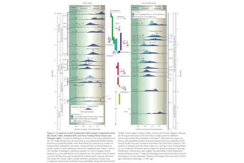 To understand how we evolved, we have to understand where we evolved. Natural selection exists because the environment is kinder to some individuals than others. Depending on the species, that environment may be a lake miles underneath Antarctic ice, an alpine meadow near the top of a mountain, or an oxygen-free swamp in the sweltering tropics. Each habitat creates its own set of conditions in which individuals thrive or die. We humans are no different. We are the product of where we have lived. A century ago, paleontologists thought humans evolved in Central Asia. At the time the only known fossils of an ancient human relative (what we now call a hominin) came from Indonesia. The idea of humans evolving in dank rain forests did not appeal to Western scientists who lived in temperate climes. They looked to Central Asia's windswept plains. In 1926, the American paleontologist Henry Fairfield Osborn laid out this line of thinking in an essay called "Why Central Asia?" "In that environment, the struggle for existence was severe and evoked all the inventive and resourceful faculties of man," he wrote. "While the anthropoid apes were luxuriating in the forested lowlands of Asia and Europe, the Dawn Men were evolving in the invigorating atmosphere of the relatively dry uplands." It's hard to imagine worse timing for such a declaration. In 1925, the year before, Raymond Dart discovered the skull of a another hominin in South Africa. It was much older than the one in Indonesia, and it was a lot more ape-like. And since then, paleoanthropologists have found many more fossils of very old hominins in Africa, from South Africa to Kenya and up to Ethiopia and Chad. Hominins first split off from the ancestors of chimpanzees and bonobos (both found only in Africa) about seven million years ago. The oldest hominin fossils date back to about that age, and from seven million to 1.8 million years ago, the fossil record was exclusively African. Only then did hominins start popping up in places like Indonesia and the Caucasus Mountains. Hominins also continued to inhabit Africa, and evolve into new species. The first fossils of Homo sapiens, dating back about 200,000 years ago, are from Ethiopia. While Osborn was wrong about the place where humans evolved, his vision of the invigorating atmosphere of dry uplands survived. Dart himself wrote in Nature that South Africa offered the same challenging grasslands as Central Asia. "We must therefore conclude that it was only the enhanced cerebral powers possessed by this group [us] which made their existence possible in this untoward environment," Dart concluded. For humans to split off from apes, he wrote, they required "a more open veldt country where competition was keener between swiftness and stealth, and where adroitness of thinking and movement played a preponderating role in the preservation of the species." Dart offered an early version of what came to be known as the "savanna hypothesis"--that moving from the forests to open grasslands drove the evolution of the hominin lineage, including the evolution of walking upright, a big brain, and even the loss of body hair. In the decades that followed, scientists tried to reconstruct the ecosystems in which hominins lived. Plant fossils were scarce, but in many cases--particularly in the Rift Valley of East Africa--these studies pointed to open, savanna-like environments. By the 1990s, however, things started to get confusing. James Shreeve, writing in this 1996 Discover article , explained how paleoanthropologists were finding evidence that the early hominins might actually have lived in more closed woodlands. The debate rolled on, fueled in part by the scarce information scientists had to rely on. Eighty-six years after Dart first presented the savanna hypothesis in Nature, the journal has now published a spectacular chronicle of the environment in which our ancestors evolved. Thure Cerling of the University of Utah and his colleagues found a way to overcome the scarcity of plant fossils. Plants absorb carbon from the atmosphere to build their wood, stems, and leaves. Carbon in the atmosphere may have different numbers of neutrons--it may be isotopically "heavy" or "light." Different kinds of plants will end up with a different balance of light and heavy carbon in their tissues. When the plants die, they add their carbon isotopes to the soil. And the soil itself can sometimes turn to rock--a substance known as a paleosol. Cerling and his colleagues went to African forests and grasslands and measured the carbon isotopes in the soils. They found they could accurately predict the percentage of woody plant cover from the isotopes alone. With this method in hand, they then analyzed 1300 samples of paleosols that formed over the past seven million years from two sites that have yielded some of the richest troves of hominins: the Awash Valley in Ethiopia, and the Omo-Turkana Basin in Kenya. The result is a "tour de force," according to Harvard paleoanthropologist Daniel Lieberman (who was not involved in the study). Here is a massive graph summarizing their findings, which will become the benchmark against which future studies of hominin evolution will be measured. The further to the left the curves are, the more wooded the habitats. The further to the right, the more open they were. In between are bars showing the age of different hominin fossils. The further to the right the bars are, the more small-brained and big toothed they are. The more to the left, the more like us they are. (You can see a bigger version of the graph here.) Once you've grokked this image, join me at the bottom for an explanation of what it all may mean.