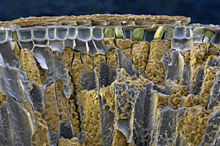 This is an image of a germinating grain of wheat, as seen through a scanning electron microscope. Wheat has been the center of controversy recently, with protests and export bans flaring up over shortages stemming from droughts and a fungus that some estimate could ruin over a quarter of the world’s wheat crop this year.