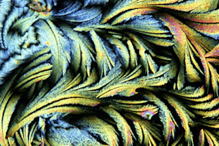 These are crystals of the antiarrhythmic drug, Quinidine, which was created to treat abnormal heart rhythms. Studies have shown that some antiarrhythmic drugs can increase the risk of death from heart malfunctions, and so the drug is used only to treat life-threatening arrythmias. Quinidine and its stereoisomer, quinine (the stuff that is found in tonic water) have been shown to ward off malaria in certain scenarios.