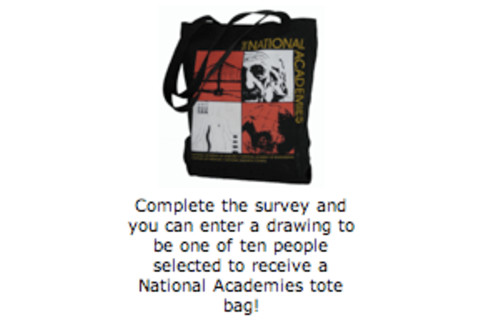 In the 2-minute survey you'll be presented with a list of topics and asked to select the five that matter most to you. At the end, you can see how your answers compare with the results so far. And you can enter a drawing to receive a National Academies tote bag! Let the National Academies know what topics you think they should focus on so they can be sure to provide you with materials that are informative and useful. Your participation is greatly appreciated.