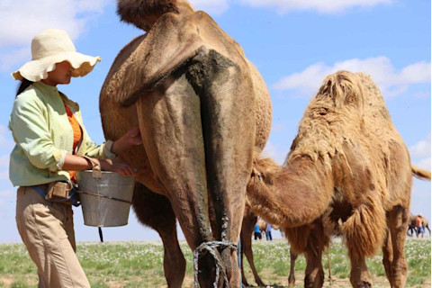 Mongolians milk all seven livestock species in the country: cows, sheep, goats, horses, yaks, reindeer, and—as shown here—camel. (Heirloom Microbes Project.)