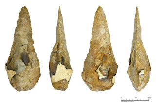 Most striking of all the tools was a massive hand axe, a triangular instrument normally used for butchering animals and cutting meat. But in this case, the “ficron” was so large and unwieldy (11.6 inches) that the researchers could only guess at its original purpose. Had Neanderthals used it as a kind of sport to test strength? As a kind of cutting tool that was placed on the ground? Or, did the ficron hold ceremonial significance for the early humans?