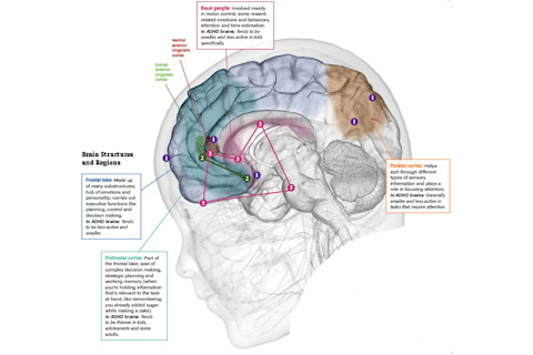 Although these aren’t all the areas and networks implicated in the disorder, here are some key players and how they differ in ADHD brains.