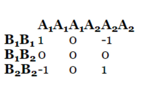 My exposition here is borrowed from Evolutionary Genetics: Case Studies and Concepts (an excellent book which has been much blog fodder over the past few years). We start with the idea of statistical epistasis; gene by gene interaction which varies the trait value. Additive genetic variance is pretty simple, you take a locus (gene) and substitue alleles (variants of genes) and see the effect it is has on the trait. Obviously you have variation on other genes, but for additive genetic variance you just assume the average of the genetic background; in other words, ceteris paribus is the order of the day. When it comes to epistasis this sort of averaging of the background won't do because it's the combinations across the genes which are relevant; think of epistatic effects as non-linear and additive ones as linear.The example from Evolutionary Genetics uses additive-by-additive epistasis across two loci; the elements of the matrix are show the outcomes of genotype combinations.