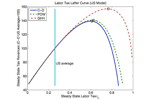 The vertical line is our average tax rate; the curves represent different model assumptions. They estimate the U.S. could increase revenues by about 36% by raising taxes. That obviously doesn't necessarily imply that we should -- but we could.
