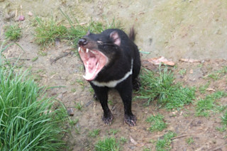I know what you're thinking, where are the photos of this wonderful new Beast of Yore? Wholly is, alas, so far known from a single molar. The tooth has enough highly specialized features, however, to tell researchers a great deal about its size and diet. They're learning even more by looking at what else was found at the site: sand grains and other environmental clues deposited around the same time as the Wholly tooth, more than 5 million years ago. That's during a period when the entire region was drying out and the toothy critter was dealing with a changing environment. Tassie devils, once present throughout Australia but now found only on the island off the nation's southeast coast, are not very closely related to Whollydooleya — but they're its nearest living relatives. That gives me an excuse to post a shot of a few friends from Devils@Cradle, one of several wonderful sanctuaries in Tasmania that are working to save this adorable, ecologically important species from the horrific Devil Facial Tumor Disease. Okay, that's a little off-topic, but I love these guys.