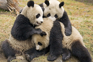 Photo: flickr/Chi KingPandas are weird bears - not only do these vegetarians survive solely on bamboo, but their coloring is also one of the most distinctive in the animal kingdom. Why are pandas black and white? Does this distinct color pattern serve a function? Here, scientists set out to explain why pandas look the way they do. The researchers propose that it's not about temperature regulation; rather, the white parts of the panda allow it to hide in a snowy background, while its black shoulders and legs help it hide in shade. Not only that, pandas might use their dark ears and eye marks to recognize individuals and communicate. But perhaps more importantly, the black and white coloring has made pandas the butt of some really bad jokes. The effect these jokes have on the survival of the giant panda remains to be tested. Why is the giant panda black and white? "Although the external appearances of most mammals are drab browns and grays used to match their backgrounds, certain species stand out as exceptions, perhaps the most notable being the giant panda. Using a comparative phylogenetic approach, we examined associations between different pelage regions and socioecological variables across carnivores and ursid subspecies to shed light on the giant panda’s black and white pelage coloration. Analyses of fur color and background environments suggest that the giant panda’s white face, nape, dorsum, flank, belly, and rump are adapted for crypsis against a snowy background, whereas its black shoulders and legs are adapted for crypsis in shade. Dark markings on the head are not used in crypsis, however, but in communication: Dark ears may be involved with signaling intent about ferocity whereas dark eye marks may serve in individual recognition. There is no compelling support for their fur color being involved in temperature regulation, disrupting the animal’s outline, or in reducing eye glare. We infer that the giant panda’s unique pelage coloration serves a constellation of functions that enable it to match its background in different environments and to communicate using facial features." Related content: Flashback Friday: An unusual finding during screening colonoscopy: a cockroach! » Why did the panda’s ancestors ditch meat for bamboo?Perhaps zebra stripes have nothing to do with avoiding lions after all!Scientists finally figure out why whales like to jump out of the water.