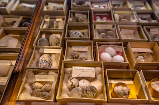 Various bird eggs on display at Natura Docet Wonderryck Twente in The Netherlands. (Rudmer Zwerver/Shutterstock) When something is described as egg-shaped, the ubiquitous hen’s egg typically comes to mind. But for birds, eggs come in myriad shapes: owl eggs look like ping-pong balls, hummingbird eggs are shaped like jelly beans, swift eggs are pointed at one end like a pear. So what's the reason? Biologists have been asking that question for quite some time, and their hypotheses are perhaps just as varied as the eggs themselves. Scientists in the past have concluded that cliff-dwelling birds lay conical eggs that roll in tight circles, so as to not fall out of the nest. Egg shape could make incubation more efficient. Even Aristotle weighed in on the egg conundrum, asserting—among many assertions—that long, pointed eggs are female while more rounded eggs are male. But for biologist Mary Caswell Stoddard of Princeton University, the answer might be more simple: egg shape is determined by flight ability. "We find that good fliers, birds that seem to be adapted for strong powerful flight, tend to lay more asymmetric or more elliptical eggs, and this came as quite a shock to us," Stoddard wrote in their study, published Thursday in the journal Science. To arrive at this conclusion, her team examined more than 49,000 eggs from 1,400 different bird species and classified them by shape. Then, in addition to a trove of biometric data, they turned to museum specimens to calculate birds' hand-wing index (HWI), a method used gauge flight ability. They then constructed a family tree of 1,000 bird species, and found that different groups of birds appeared to have characteristic egg shapes, and HWI was the thread that tied them together. The common murre spends a lot of time in the air, and its eggs are elongated like teardrops. An ostrich, on the other hand, sticks to the ground and its eggs are more oval-shaped. Adept fliers possess aerodynamic, compact bodies, so they may have evolved to lay streamlined eggs that can fit through their narrow pelvises, Stoddard posits in the paper. It’s a rather intuitive conclusion that ties a neat bow on a question that’s stuck around for centuries. Rather than linking egg shape to its function in the nest, Stoddard’s team looked to the bird.