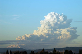 Washington's Rainier, with the industrial waterfront of Seattle in the foreground. Don't be lulled into complacency by its quiet century. Ted S. WarrenSo, what is it? There are a few things we can say about the Cascades after looking at all these data. First, the Cascades, although quiet now, aren't always so quiet. Second, compared to other arcs, the Cascades are less active. I tend to think that the quiet over the last 100 years is a product of statistics. The eruptions are mostly randomly distributed through time, so our 100 year time slice is just an anomaly in that distribution. We're just in a lucky/unlucky period where many of the big Cascade volcanoes aren't in eruptive cycles. However, looking at the distribution of eruptions for the last few thousand years, we can expect that this might not last. The Cascades have the added bonus of likely being a volcanic arc that is near its end. The San Andreas fault system is slowly working its way up the North American coast as the small plates get completely consumed by subduction. This means that eventually, as the Mendocino Triple Junction moves north, the Cascade volcanoes will likely "shut off" when the source of their magma stops operating. This won't be for millions of years, but the clock is ticking. The greater question of the overall lower volcanic activity in the long term for the Cascades is fascinating question for which we don't have the answer. In any case, we can't be lulled into a sense of complacency about the "quiet Cascades". Almost any of these volcanoes could erupt in our lifetimes (and I almost expect that one other than St. Helens will), so we need to be ready for that next Cascade eruption.