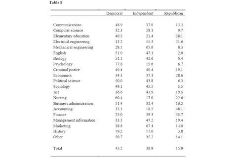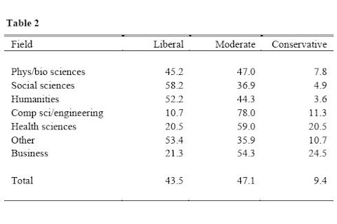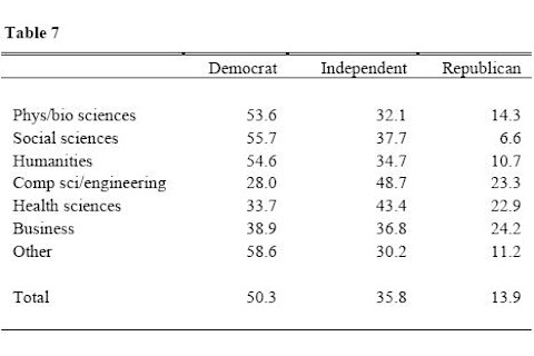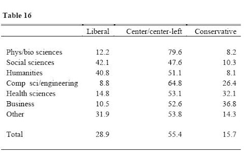 Jonah pointed me to this artice, The '60s Begin to Fade as Liberal Professors Retire, which chronicles the shift toward political moderation among the professoriate. That moderation seems to be less about changes in views toward the center of the American political distribution than it is a greater focus on career as opposed to striking a pose as a social revolutionary. As it happens, you can find the working paper which has most of the data which the article is based on, THE SOCIAL AND POLITICAL VIEWS OF AMERICAN PROFESSORS. Below the fold I've placed the most interesting graphs, where you can see one which shows that the majority of professors ascribe the underrepresentation of females in science & engineering not to discrimination (about 40% of professors are female).