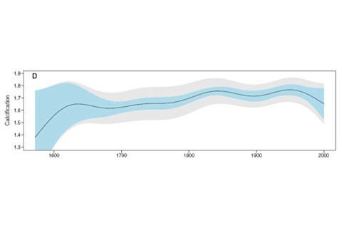 For 10 of the colonies, they drilled deep into the corals to extract samples reflecting over four centuries of growth. With this data, they could compare the recent slowdown to the Reef's performance since 1572, when Elizabeth I was still Queen of England. Sure, it's a small sample size, but the record showed the same pattern as the more recent one - the Reef had been prospering for over 400 years, adding calcium at ever-increasing rates until it hit a big downturn in the 1960s.