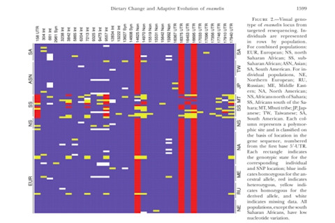 Interesting new paper in Genetics, Dietary Change and Adaptive Evolution of enamelin in Humans and Among Primates: