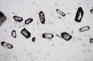 Zircon crystals from a rhyolite tuff within the Mineral King pendant, Sierra Nevada, California. Note the scale bar in the corner to get a sense of the size of the crystals. They will be analysed using a laser ablation mass spectrometer system to determine their age through uranium-lead isotopic ratios. Image: Erik Klemetti I'll be off at Michigan State University for the next few days running some U-Pb age analyses on these zircon (above) from the Mineral King area of the Sierra Nevada in California. The grains will likely be somewhere between 98 and 220 million years old (that's why we're dating them!) Zircon are pretty distinctive when you handpick them out of a crystal separate, with that districtive pyramid end (sometimes on both ends if the crystal isn't broken), flat sides (a euhedral shape -- meaning well-formed crystal) and dark edges (an optical property due to zircon's crystal structure). Each of these crystals stores a wealth of age and compositional information about the magma in which they formed and they are one of the more resilient minerals in most magma, so they can remain unaltered even if the rock in which they are hosted gets beat up, like many of the rocks trapped within the Sierra Nevada granite bodies are. Tiny little time capsules, all waiting to be extracted. So, no new posts until next week (sorry), but in the meanwhile, just enjoy how gorgeous these crystals can be.
